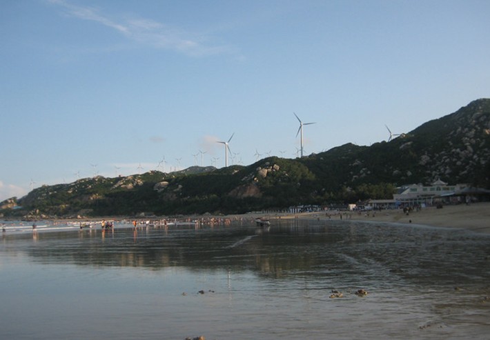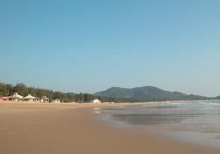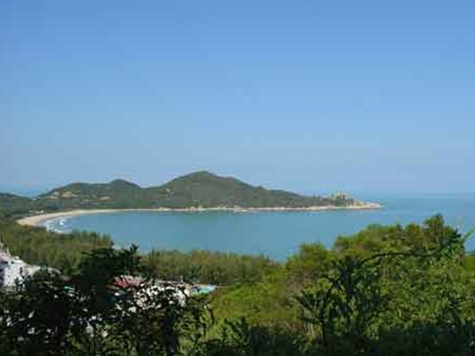 青澳灣,灣口朝東南,灣腹很深,灣弧達2.9公里。嶺頭新建的一座涼亭,名曰:“覽月亭”。成排成片的木麻黃樹循著孤形沙灘蔓延開去。海浪、白沙、林帶以及林中新筑的各式亭臺樓閣,構成了色彩斑斕的海市蜃樓圖景。據說沙灘長達2.4公里,沙帶寬近百米。沙灘向海延伸坡度平緩,數(shù)十米內海水僅米余深,是海浴的理想場所,被譽為“泳者天池”,是廣東省僅有的兩個A級海濱浴場之一。