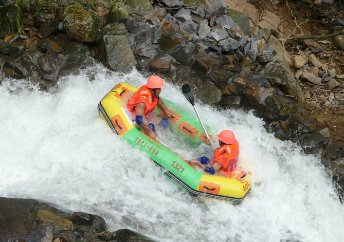 全程勇猛漂河道長(zhǎng)4.8公里,總落差168米,大小落差有130多處,漂時(shí)150--180分鐘。全程既可感受澎湃刺激而安全的漂流,又能在自然生態(tài)的環(huán)境中享受一流水質(zhì)的無(wú)窮魅力:漂過(guò)一山又一山,賞盡一景又一景;人在水中漂,如在畫(huà)中游。(提示:1.3米以下的游客請(qǐng)勿參與,16歲以下的游客請(qǐng)?jiān)诔扇伺阃聟⑴c