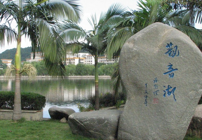 觀音嶺位于碣石鎮(zhèn)北與金廂交界之處,因嶺上有觀音禪淙堂(水月宮)而得名。嶺下海灘長(zhǎng)達(dá)8km,海中距岸lOOm處水深才1,5m,距岸200m水深2m。沙白、水清、浪小,是一個(gè)理想的天然游泳海灘。嶺前奇山眾多,有周恩來(lái)、葉挺同志當(dāng)年搶渡香港下海處的龍石,汕尾市境內(nèi)最大的摩嶺刻“鎮(zhèn)海石”,明欽差大臣成大猷、鄭岳山刻“鎮(zhèn)海石”,“揚(yáng)威止水”于鎮(zhèn)海石上。該處以“神、海、沙、石”兼?zhèn)涠劽袊?guó)書法家協(xié)會(huì)主席啟功先生題“粵東旅游黃金海岸”于石上。