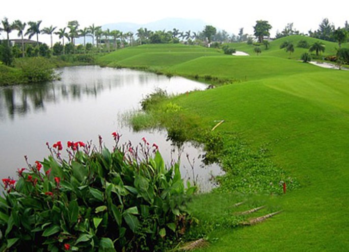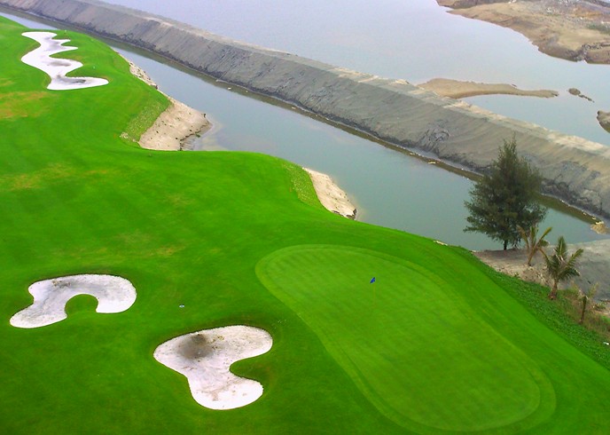 球場(chǎng)配備國(guó)際先進(jìn)水平的配套設(shè)施,最先進(jìn)的電腦系統(tǒng)以及排水設(shè)備,時(shí)刻保持最佳打球環(huán)境。球場(chǎng)延緩蘇格蘭古樸風(fēng)范,展開夢(mèng)幻般絢麗場(chǎng)景:充水鄉(xiāng)韻味的球場(chǎng)內(nèi),一條全長(zhǎng)1.5公里的海岸線;星羅棋布的人工湖,與小河交織成網(wǎng), 將球場(chǎng)雕塑成一塊塊開頭各異的"綠洲"。揮桿者乘船打球,乘船往來,成為高球場(chǎng)一大特色。飄逸起伏的球道或直向上,跌宕而下;或逼仄曲折,撲朔迷離;或?qū)掗熯b長(zhǎng),草天相接。