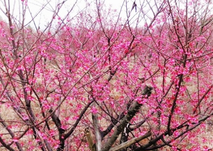 韶關(guān)櫻花峪位于廣東省韶關(guān)市新豐黃礤鎮(zhèn)偏北5公里處,總面積800多畝。目前,櫻花谷已成為廣東規(guī)模最大、品種最多的櫻花觀賞地,也是廣東省第一個(gè)以櫻花為主題的綜合性農(nóng)業(yè)旅游區(qū)。區(qū)內(nèi)的櫻花品種有20多種,其中種植八重櫻和寒緋櫻居多。八重櫻也叫關(guān)山,花色白色至深粉紅色,開花較遲,由于有八重花瓣,稱之為八重櫻。寒緋櫻花色是鮮紅,適合溫暖地區(qū),卻不耐寒,1月下旬已盛開。