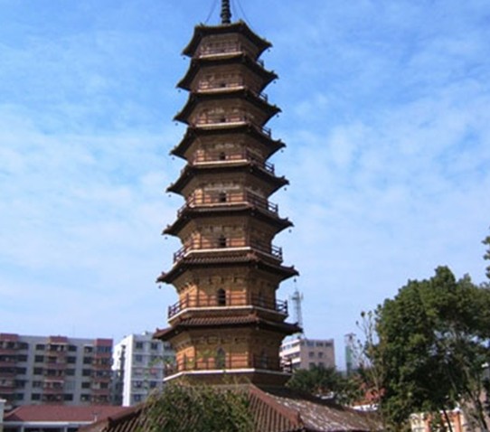 三影塔位于南雄市區(qū)永康路,建于北宋大中祥符二年(公元1009年),明代正統(tǒng)十一年(公元1446年)重修過。三影塔被列為全國重點文物保護單位。三影塔原名延祥寺塔,是延祥寺的一座建筑物,是廣東省僅有的有絕對年份可考的北宋早期磚塔。在光滑如鏡的寺壁上,竟然可以反射出三個塔影,一影向上,兩影倒懸,所以延祥寺塔被稱為三影塔。延祥寺內(nèi)的一間廳堂也被稱為“三影堂”,可惜這座古寺廟早已毀掉,由于光線折射而出現(xiàn)的一塔三影的奇觀也隨之消失了。該塔為九層樓閣式磚塔,平面六角形,高50.2米,塔內(nèi)設(shè)有木梯通向頂層,每層樓筑平座建欄桿,每上一層均須鉆出塔門,繞塔身一段,才能進入另一塔門,再向上攀登。