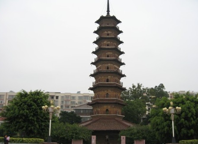 三影塔位于南雄市區(qū)永康路,建于北宋大中祥符二年(公元1009年),明代正統(tǒng)十一年(公元1446年)重修過。三影塔被列為全國重點文物保護單位。三影塔原名延祥寺塔,是延祥寺的一座建筑物,是廣東省僅有的有絕對年份可考的北宋早期磚塔。在光滑如鏡的寺壁上,竟然可以反射出三個塔影,一影向上,兩影倒懸,所以延祥寺塔被稱為三影塔。延祥寺內(nèi)的一間廳堂也被稱為“三影堂”。