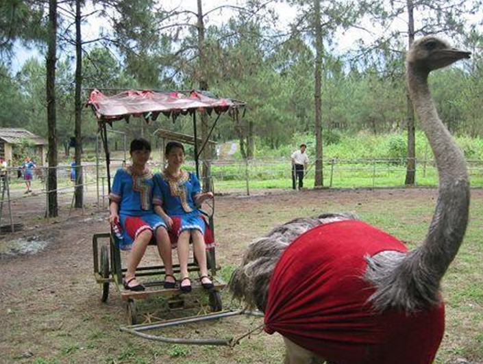 鴕鳥寨(養(yǎng)殖場)位于乳源縣城東12公里,距云門大覺禪寺7公里,距韶關(guān)市區(qū)39公里。鴕鳥寨集鴕鳥的孵化、養(yǎng)殖、繁殖、屠宰、皮革、羽毛加工、飼料制造及觀光旅游,餐飲旅業(yè)于一體的三高農(nóng)業(yè)之一部分,總規(guī)劃占11000畝,目前已擁有屆同齡鴕鳥群約2000只。鴕鳥寨生態(tài)旅游區(qū)由幼鴕區(qū)、小鴕區(qū)、中鴕區(qū)、種鴕區(qū)、臺灣果園、現(xiàn)采蔬菜區(qū)、釣魚區(qū)、兒童游樂區(qū)、鴕鳥游樂區(qū)、燒烤區(qū)、民族文化廣場及原野滑草場與度假別墅區(qū)所組成。