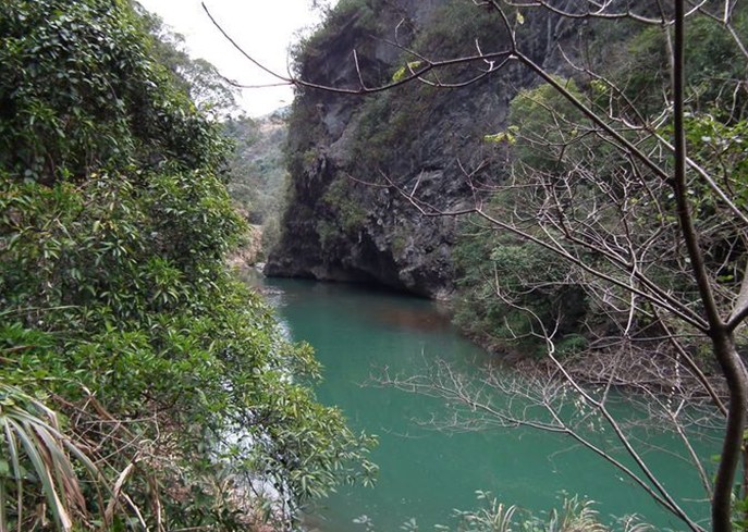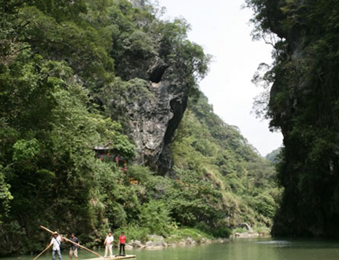 喀斯特巖溶地貌,內(nèi)拱高108米,寬56米,長(zhǎng)約156米,雄偉壯觀(guān)。內(nèi)有許多石鐘乳、石華,形成多姿多彩的造型。