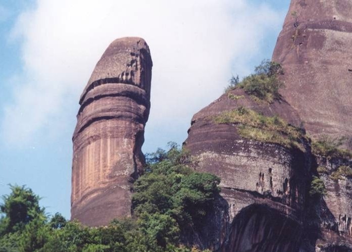 陽元石是一柱沖天巨石,其形狀不論是上部(頭部)、中間乃至下部,與勃起的男性生殖器(甚至皮色、血管)都十分形似。此石高28米,直徑7米,屬石柱類型。據(jù)專家考證,作為一個天然石柱,它從陽元山的大石墻分離出來已經(jīng)有30萬年歷史。稱為陽元石,是取其陽剛之陽,元氣之元,意即陽剛之氣也。