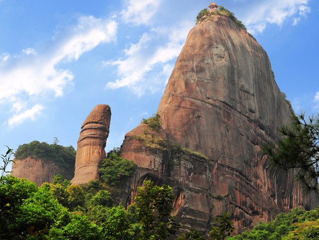 陽元山與丹霞山(長老峰)隔河相望,它因有天下奇石陽元石而得名。這里的山石不論大小,均構(gòu)成奇特的地貌造型,該區(qū)是以陽元石為中心的一塊山地,是丹霞山景區(qū)內(nèi)的一個單元游覽區(qū)。