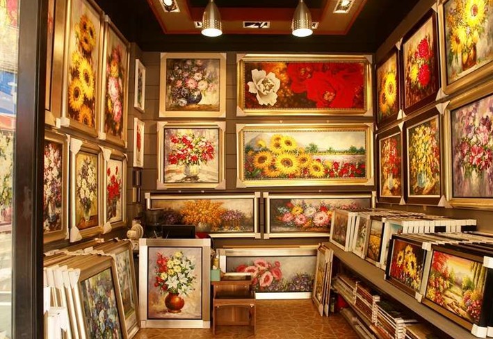 以油畫為主,國畫書法及其他工藝品為輔。版權(quán)所有山東聊城聊之旅國際旅行社有限公司,轉(zhuǎn)載必究!大芬油畫村除了油畫之外,還包含有其他藝術(shù)門類的經(jīng)營,如國畫、書法、雕塑、刺繡、漆畫、景泰藍等等。在總體的776家門店中,從事油畫經(jīng)營的有583家,從事國畫、書法創(chuàng)作和銷售的有53家,從事畫框、顏料等相關(guān)配套產(chǎn)品經(jīng)營的有73家,從事工藝、雕刻、刺繡、裝飾、噴繪及書畫培訓的共有67家。