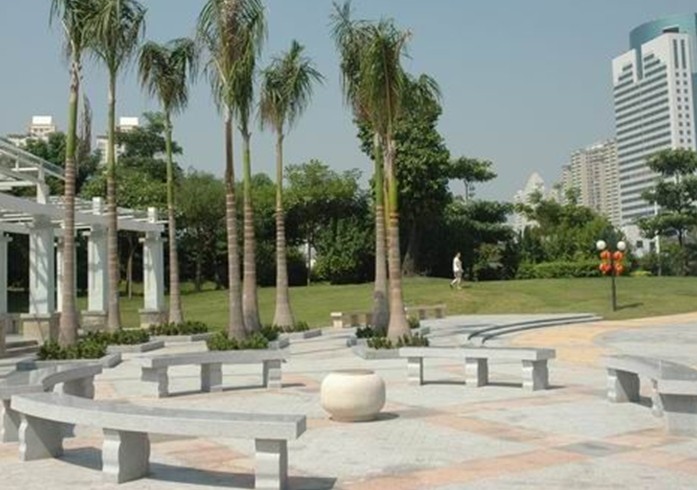 東門文體活動(dòng)區(qū),包括三個(gè)網(wǎng)球場(chǎng)、休閑廣場(chǎng)和古代文化傳說亭廊,供市民休閑、鍛煉;