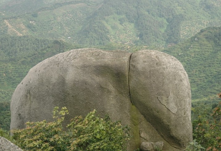 由市區(qū)、南山乘101、226、104、M203、240、B796等到西麗湖,搭摩的(10元/人*車)沿沁園路經(jīng)麒麟山莊、療養(yǎng)院、大勘村、福利農(nóng)場到黃金坑村。由黃金坑耕作口(武警把關(guān),需好言商量)出關(guān),穿過農(nóng)田、養(yǎng)豬場向北上山。一路沒有明顯山路,行于荔枝樹和灌木雜草中,一定要注意方向——正北。40分鐘上到小山頂后可西北望羊臺。前下方一道山谷,有三五間農(nóng)宅(香對壢),對面山腰以上可見防火隔離帶。尋路下谷底再上到隔離帶后一路西北向登山,經(jīng)蔦歌山沿山脊前行,約2—3小時可達(dá)羊臺山頂。蔦歌山有一奇景:一巨石由北南望極似大象:頭東尾西,眼、耳、鼻、四肢清晰可辯,甚至尾巴也有。惟妙惟肖,令人驚嘆。