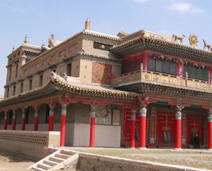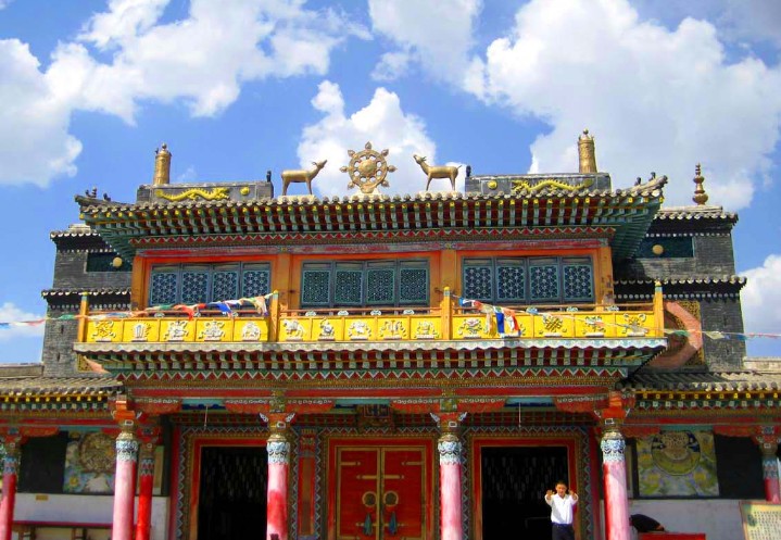 但那個時候,噶爾丹是朝廷的罪人,是不能大事鋪張的。所以,這個可憐的女人,就把噶爾丹的遺體簡單地埋葬在希拉穆仁河邊。這座墳?zāi)梗邪司啪褪墙裉煺俸樱ㄏ@氯剩╂?zhèn)所在地西南一公里的王墓。版權(quán)所有山東聊城聊之旅國際旅行社有限公司,轉(zhuǎn)載必究!此是后話,按下不提。掩埋了丈夫的遺骨,帶著丈夫的遺孤,藍琪兒遠遠地離開了希拉穆仁,回到養(yǎng)育了她丈夫的故地,潛心撫育她心愛的兒子??滴跞f歲爺雖然消滅了噶爾丹,但對于藍琪兒的命運仍十分關(guān)注。也是命里注定,席力圖召的五世活佛圓寂了。六世活佛應(yīng)該轉(zhuǎn)世在哪里?萬歲爺派遣密使,前往西藏,如此這般。不久,席力圖召大喇嘛得到旨意,到喀爾喀蒙古尋找,最后,找到了噶爾丹的遺孤、藍琪兒的兒子,將他命名為阿嘎旺老布生達瓦,成為席力圖召第六世活佛。以后的事情,正如您已經(jīng)知道的,席力圖召六世活佛在希拉穆仁河畔建造了這座規(guī)模宏大的普會寺。普會寺的大門與王墓遙遙相望。他的目的,一方面是將其作為席力圖召的夏季避暑勝地;另一方面,則是為了讓他父親的亡靈,永遠得到佛教的護佑。