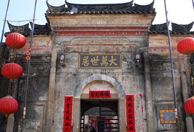 大萬(wàn)世居除布局造型獨(dú)特之外,還有許多珍貴民俗遺物,歷經(jīng)二百余年天災(zāi)人禍,如今尚有殘存。祠堂內(nèi)外,堂壁堂梁的書法繪畫,雕梁畫棟,工藝運(yùn)筆極為精湛。中堂壁上隱約可見王勃的《滕王閣序》、孟浩然的《春曉》、王之渙的《登鸛雀樓》、金昌緒的《春怨》的草書遺跡以及栩栩如生的《八仙》組畫。正大門上的“大和保合,萬(wàn)福攸同”的對(duì)聯(lián)出自《詩(shī)徑•小雅》,具有豐富的內(nèi)涵。最引人關(guān)注、引人深思的是“端義公祠”前的牌樓有四根石柱三塊石碑,居中一塊兩面刻有陽(yáng)文,向外為“勿替引之”,向內(nèi)為“其旋元吉”,與上廳另一楹聯(lián)“堂構(gòu)相承維凜修齊盈舊德,宗公流慶冀將鍾釜妥先靈”遙相呼應(yīng)。堂梁堂壁上懸掛著“州司馬”、“贊政宏才”、“急公好義”三塊牌匾,這些聯(lián)匾,把圍屋開基者和客家人的厚德、忠孝、崇文的正統(tǒng)思想表現(xiàn)得淋漓盡致。版權(quán)所有山東聊城聊之旅國(guó)際旅行社有限公司,轉(zhuǎn)載必究!大萬(wàn)世居不愧為客家民俗文化歷史的珍貴遺產(chǎn)。