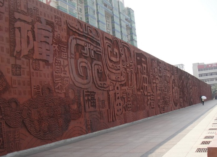 在廣場南側(cè)建有紫砂陶浮雕萬福壁,雙面長260米、高6米、作品厚度10-16厘米,紫砂作坯陰干、雕刻,經(jīng)1160攝氏度高溫燒制而成。共搜集了中國歷代不同寫法的“福”字1萬余個,該作品經(jīng)中國美術(shù)學會雕塑專業(yè)委員會鑒定后于2000年4月收入大世界基尼斯之最。福字作為中國民間的傳統(tǒng)文化的元素,版權(quán)所有山東聊城聊之旅國際旅行社有限公司,轉(zhuǎn)載必究!有著數(shù)千年文明歷史,是人們對美好愿望無永遠追求和孜孜祈愿,《萬福壁》將其與千百年來民眾賴以棲身的中國式長墻結(jié)合在一起,體現(xiàn)了傳統(tǒng)藝術(shù)與中國民俗的高度統(tǒng)一。自萬福壁建成后引來眾多游人前往觸摸壁上各種寫法的福字以求沾染福氣。 萬福廣場始建于1978年,1979年收集完成,1980年完成