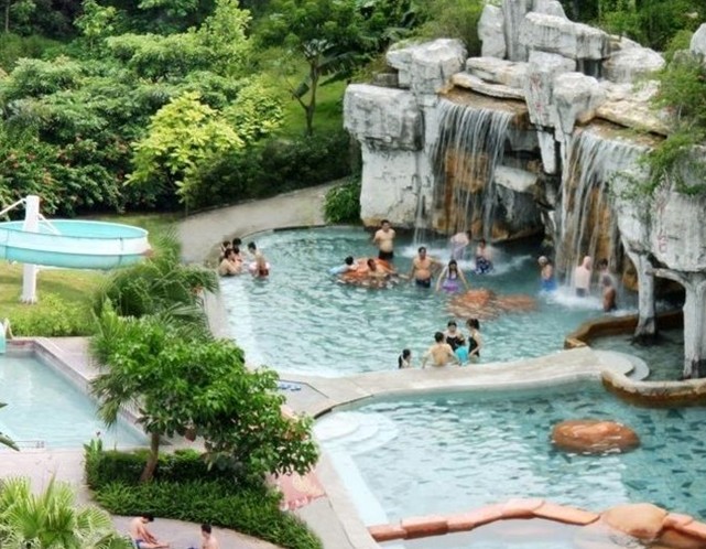 (4)沖浪池:水溫34℃-36℃,大型的溫泉沖浪,池底建造獨(dú)特,有天然的鵝卵石建造而成,享受沖浪同時(shí)還可以進(jìn)行足底物理按摩。水深0.8—1.4米。