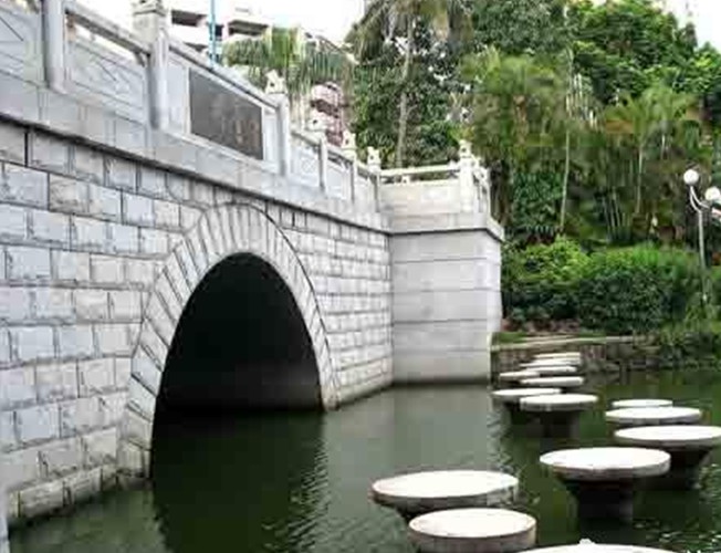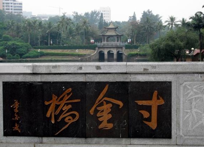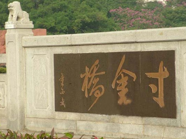 寸金橋位于湛江市赤坎區(qū)寸金路原廣州灣租界西面界河赤坎河(又稱文章河)上。河水連接寸金橋公園月影湖,橋之西為華界,橋之東為租界,是為紀念1898 ━1899年遂溪人民反抗法國強租廣州灣的斗爭的史志性建筑物。1925年遂溪縣麻章區(qū)紳民建,原有的“寸金橋”隸書橋名刻石,現存湛江市博物館??谷諔?zhàn)爭時期重修,1959年和1986年擴建,為石砌單拱式水泥橋面橋梁,全長19米、面寬11.6米,單拱園徑6.5米,橋面南北兩側各置欄柱,人車分道。橋頭東西有董必武、郭沫若題詞橋匾,董必武題書“寸金橋”,郭沫若題“一寸河山一寸金”。接著,路改名寸金路,版權所有山東聊城聊之旅國際旅行社有限公司,轉載必究!公園改名寸金橋公園,車站和酒家均以“寸金”命名。一九五九年人民政府重修“寸金橋”,并于橋旁立碑(有碑文),從此“寸金橋”成為抗法斗爭的一個象征性建筑物。一九六○年,郭沫若到湛江觀看粵劇《寸金橋》,題詩有“一寸河山一寸金”之句,“寸金橋”名聲更著。 西山公園一九八○年改名“寸金橋公園”(因“寸金橋”在其旁,公園博物館內有抗法斗爭專題陳列)。一九八四年初又于公園內豎立大型雕塑《寸金橋抗法斗爭紀念雕像》,參觀的人絡繹不絕。