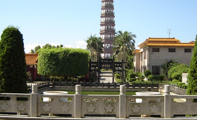 三元塔公園位于廣東省雷州市雷城鎮(zhèn)曲街4號(hào)(原雷城“南門頭)東側(cè),占地約三萬多平方米。因園內(nèi)有聞名遐邇的省級(jí)文物保護(hù)單位三元塔,故名。公園大門為一座紅頂,四柱,三間貼大理石的牌坊式建筑。”此園分前后區(qū)兩部分,前區(qū)為體育、娛樂活動(dòng)場(chǎng)所;后區(qū)為文物古跡風(fēng)景區(qū)。一進(jìn)公園大門,首先映入眼簾的是幾棵四季常青的參天古榕。據(jù)專家鑒定這些古榕的樹齡均在二三百年以上,屬林業(yè)部門列為保護(hù)的古樹木。古榕南邊有一座由雷州市旅居加拿大的僑胞釋賢德博士和釋文泉法師捐資興建的”德泉益壽樓“。此樓共三層,建筑面積600多平方米,典雅寬敞,設(shè)備齊全,版權(quán)所有山東聊城聊之旅國(guó)際旅行社有限公司,轉(zhuǎn)載必究!為雷州市一處深受老人歡迎的娛樂活動(dòng)中心。
