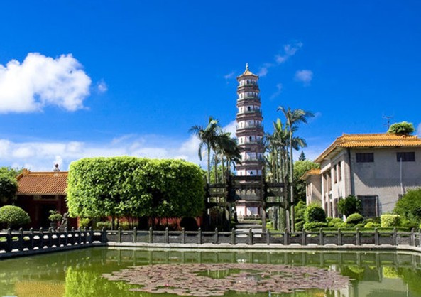 于明萬歷四十一年(1613年)元月興工,至萬歷四十三年(1615年)四月落成。初命名“文魁塔”,又稱“啟秀塔”。后因挖塔基時(shí)發(fā)現(xiàn)蛇卵三只,以以為是“三元及第”之兆,故改名為“三元塔”。在380多年前建筑工具簡(jiǎn)陋的情況下,雷州人民僅用約兩年時(shí)間就建成一座如此雄偉壯麗的高層古塔,至今已經(jīng)經(jīng)歷了將近400年的風(fēng)雪滄桑,雷轟地震仍巋然屹立,充分顯示了雷州人民的聰明才智和驚人的創(chuàng)造力。此塔坐東向西,樓閣式磚木結(jié)構(gòu),用棱角牙子磚和線磚互相疊澀出檐,下大上小,逐層遞減,比例勻稱。檐上有平臺(tái)、外廊,繞以欄桿。八觚九級(jí)、內(nèi)樓17層、高57米。塔基為石刻須彌座。八面共嵌有23塊陽雕石刻,分別為“麟趾呈祥”、“鯉跳龍門”、“獅子戲球”、“三羊(陽)開泰”、“雙鳳朝陽”、“喜鵲練梅”等,線條粗獷,形態(tài)生動(dòng),富有民族特色和地方風(fēng)格,為明代石刻珍品。每層設(shè)真、假門,呈圭角形。真門對(duì)開相連通,利用塔壁為階梯由下而上,穿過塔心室,繞平座(塔廊)、南入北出、東進(jìn)西升、盤旋而上,可達(dá)極頂。三元塔建成后,雷郡形勝大為改觀,“鼎峙瓊南添一指,聯(lián)翩雁字豫題名”。 版權(quán)所有山東聊城聊之旅國(guó)際旅行社有限公司,轉(zhuǎn)載必究!后來“雁塔題名”成為雷陽八景之一。古往今來,不少騷人墨客、名宦顯貴慕名登臨,留下不少膾炙人口的詩文,其中明代海北南守道蔣光彥(福建晉江人,進(jìn)士)有詩贊道: