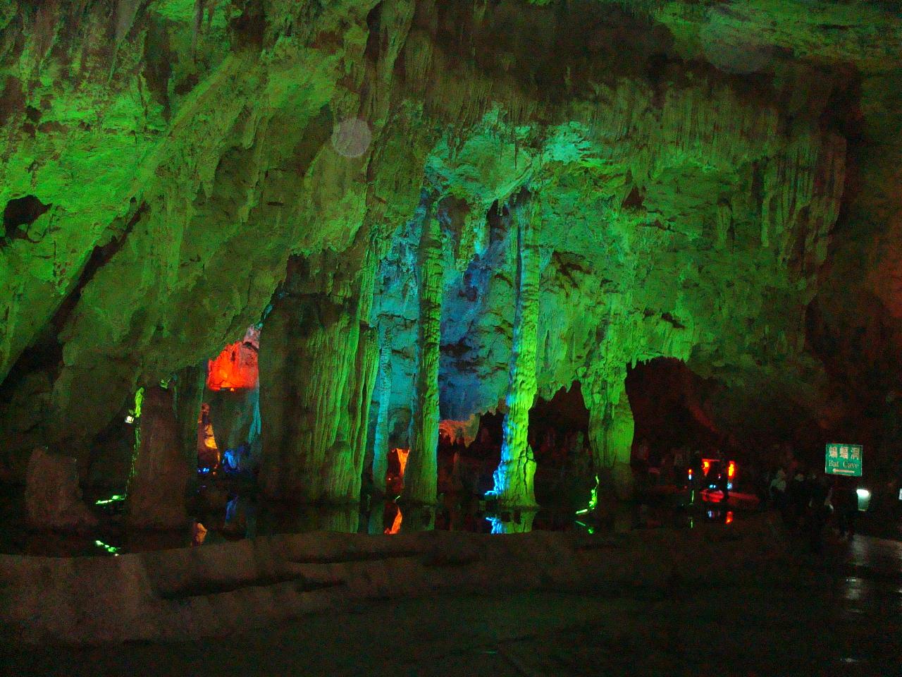 洞中棲息著7個品種約10萬只蝙蝠,屬世界奇觀。其中大白蝙蝠和小耳蝙蝠系新發(fā)現(xiàn)的珍稀品種,國內(nèi)外罕見。有的蝙蝠展翅寬度可達58厘米,掠空飛翔,姿態(tài)優(yōu)美;白天在洞中石壁上倒掛棲息,一遇驚動,轉(zhuǎn)動頭部,抖動雙耳,發(fā)出鳴叫;出洞盤旋覓食時,持續(xù)數(shù)小時,場景壯觀;黎明前,先在洞口盤旋片刻,然后疾速進洞,比出洞更為壯觀;加之洞中常年流水不斷,時而積潭,形成成瀑,時而循入暗河,只聞嘩嘩水聲,不見水源。