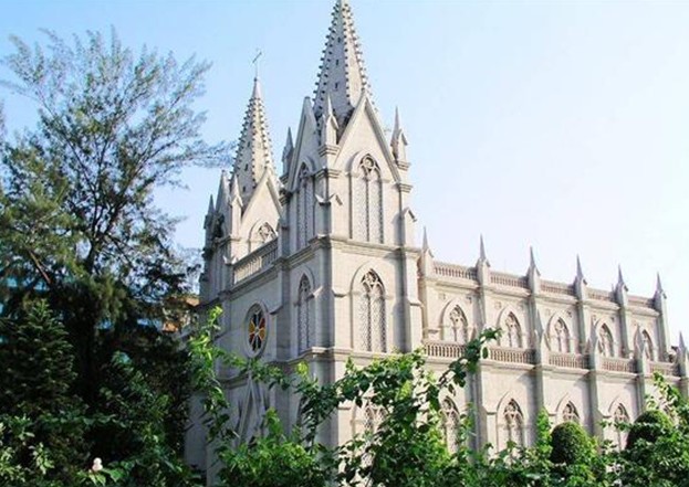 維多爾天主教堂位于湛江市霞山區(qū)綠蔭路85號,又稱霞山天主教堂,巍峨高聳,莊嚴肅穆,四周花木環(huán)繞,是湛江唯一的哥特式教堂,也是全國重點教堂之一。法帝國主義入侵廣州灣(今湛江市)后,天主教隨之而入,1900年法籍神父在湛江主持教務(wù)期間,提出興建教堂,1903年由教會籌資建成。文革期間,教堂遭到了嚴重破壞,文革后收回教堂進行修葺,于1984年12月20日舉行復(fù)堂典禮。
