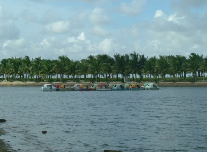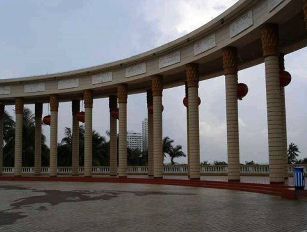 湛江海濱公園位于霞山區(qū)東北角海濱,這里有細白的沙灘、湛藍的海水、挺拔的椰樹,如茵的芳草,鮮艷的花卉。富有亞熱帶海洋風光,被稱為湛江的“城市客廳”。時代廣場就是公園的大門。大門為歐式建筑風格,由二十根圓柱頂起一弧形柱廊,上方鑲嵌著九幅漢白玉浮雕,浮雕描繪了湛江百年歷史,廣場地面用紅、褐、灰三色馬賽克拚成一幅世界地圖。圖中標明湛江的位置,也標出世界九個著名口岸,旁邊刻上湛江距離這九個港口的海上里程。時代廣場以其獨特的外形和豐富的內(nèi)涵,成為湛江市一個新的城市標志物。