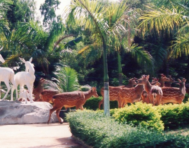 湛江金鹿園位于廣東湛江市湖光巖北側(cè)1公里處,占地近百畝,與湖光巖、南亞熱帶植物園共同構(gòu)成環(huán)湖生態(tài)旅游圈,附近空氣清新,既是湛江市理想的天然“氧吧”。也是華南地區(qū)最大的養(yǎng)鹿基地,是集生態(tài)旅游、購(gòu)物休閑、科普教育于一體的景點(diǎn)。梅花鹿,毛色美麗,性情溫馴,極具觀賞性,是吉祥、幸福的代表物。金鹿園的梅花鹿是1972年從東北引進(jìn)的,經(jīng)過20多年的努力,已經(jīng)成功解決了北鹿南養(yǎng)的一系列技術(shù)難題,原先引進(jìn)的43頭種鹿已繁育出后代鹿1800多頭。