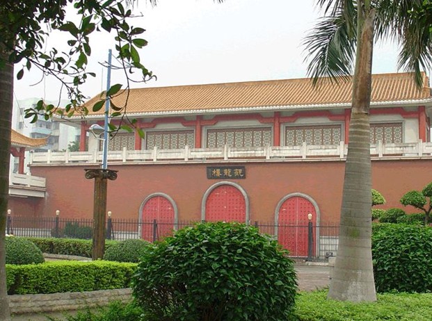 觀龍樓位于愛亨村東南面的牛頭山頂。民國24年(1935年)孫科任中山紀(jì)念中學(xué)校董會(huì)主席時(shí),與廣東省農(nóng)業(yè)廳商定建立孫中山故居農(nóng)業(yè)所而興建的農(nóng)業(yè)所辦公室。1984年翠亨賓館興建時(shí),將牛頭山及這座樓房接管,辟為游覽點(diǎn)。這幢樓紅墻綠瓦,門前兩條石柱繞著兩條龍,栩栩如生。這里憑高遠(yuǎn)望,可清楚望見唐家半島和淇澳島對(duì)峙的金星門(金星港),左、右兩個(gè)島成長條狀,形似臥龍,正中的金星島,嬌小玲現(xiàn),宛若一顆小珍珠。每當(dāng)晨曦破曉時(shí)望過去,恰似一幅“二龍爭(zhēng)珠”奇景。