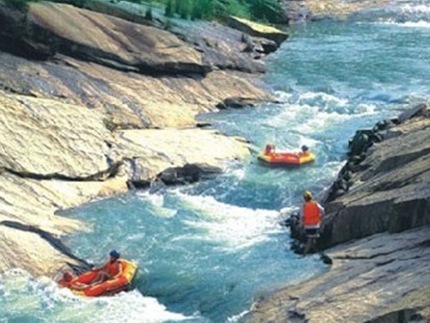 濃蔭覆蓋下的漂流河,約一千多米長,全天然五桂山溪水,白玉般蜿蜒曲折于蒼天翠林中,溫柔與刺激并行。遇激流,可體驗(yàn)狂濤浪聲中穿梭的驚險(xiǎn)刺激,享受那飛越的驚喜,既刺激又鍛煉人的意志;在淺灘,版權(quán)所有山東聊城聊之旅國際旅行社有限公司,轉(zhuǎn)載必究!溫柔的滑行,可賞兩岸滿目山景,聽小鳥淺吟低唱,清心潤肺......激流澎湃的礦泉水,一波波簇?fù)?,岸邊錯(cuò)落的綠意,引來幾只野鳥停駐,幽幽翠竹林。