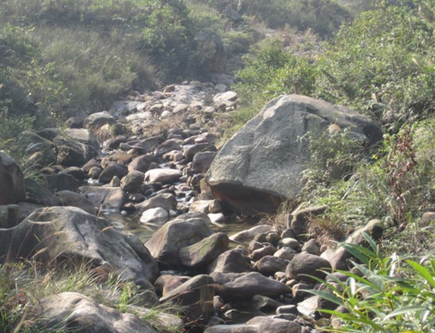 黃楊山的瀑布,長(zhǎng)流不絕,經(jīng)過(guò)第一石門(mén)下約一百多米有一深潭。相傳漢鐘離瀏覽黃楊山后,汗流浹背,在石門(mén)沐浴,猛擦身上的汗泥,由于用力大,磨下一個(gè)窩,瀑布流下的水,天天沖擊,處久日遠(yuǎn),越?jīng)_越深,成了深潭。有好奇心的人用一長(zhǎng)繩系了石塊,放進(jìn)潭中,試它的深淺,但總不見(jiàn)底,后來(lái)投入大糠,有人在大赤坎村的海面看見(jiàn)有大糠浮出,故命名為”無(wú)底深潭”。