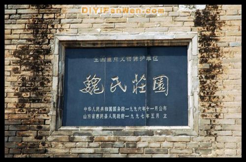 魏氏莊園是目前發(fā)現(xiàn)的中國(guó)最大、保存最完整的清代城堡式民居。莊園位于惠民縣城東南30公里220國(guó)道南側(cè)魏集鎮(zhèn)的魏集村。它是清代布政司理問(wèn)、武定府同知魏肇慶的私人宅第,建于清光緒十六年至十九年(公元1890-1893年),歷經(jīng)戰(zhàn)爭(zhēng)洗禮和政治運(yùn)動(dòng)沖擊,主體建筑保護(hù)完好。