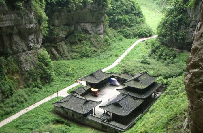 天坑三橋位于重慶市的武隆縣城東南20公里處,是重慶5A景點,武隆至仙女山高速水泥標美路旁,距南國草原仙女山約15公里,距天下第一洞芙蓉洞僅30公里,是全國罕見的地質奇觀生態(tài)型旅游區(qū)。景區(qū)內游覽路線從崖壁到谷底共5公里,以天龍橋、青龍橋、黑龍橋天生三座規(guī)模龐大,氣熱磅礴的石拱橋稱奇于世,三橋平均高200米以上,橋面寬約100米,在距離僅1.2公里的范圍內就有如此龐大的三座天生橋實屬國內罕見。