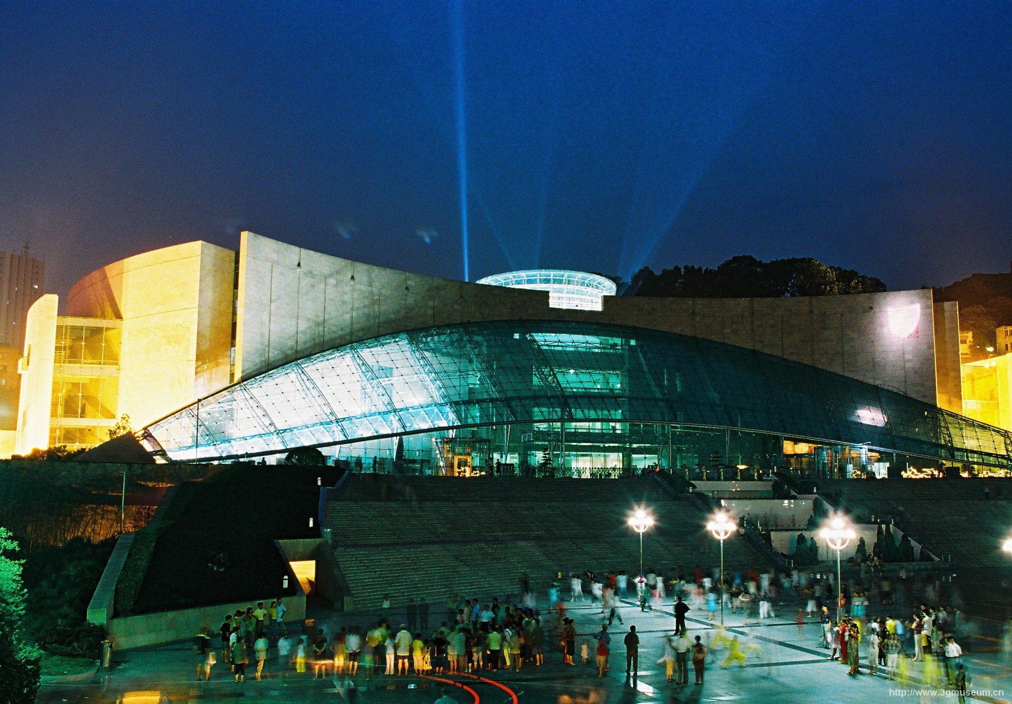重慶中國(guó)三峽博物館的總體布局通過以東西走向的人民大禮堂對(duì)稱軸為主軸線,并以一個(gè)完形將人民廣場(chǎng)與博物館主體建筑聯(lián)系起來(lái),版權(quán)所有聊城聊之旅國(guó)際旅行社有限公司,轉(zhuǎn)載必究!主軸線上人民大禮堂、人民廣場(chǎng)、博物館三位一體,一氣呵成,張馳收放灑脫自如,形成“三位一體”的四維效果(包含人群的行為運(yùn)動(dòng))。通過對(duì)完形的分解整合、高差變化、肌理對(duì)比,形成統(tǒng)一簡(jiǎn)約而又內(nèi)涵豐富的象征圖形。人民廣場(chǎng)與博物館一體圖形,用一把巨型的琵琶圖案連接。從東端人民大禮堂向西望,博物館主體的玻璃頂在陽(yáng)光照射下有如水中(前部水池)和群山(展廳山石狀)中升起的紅日,顯出勃勃生機(jī)。從西端博物館東望,人民大禮堂在人民廣場(chǎng)和諧曲線環(huán)抱的映襯下,昭示出博物館和人民大禮堂兩個(gè)不同時(shí)期標(biāo)志性建筑的歷史對(duì)話,而人民廣場(chǎng)則成為對(duì)話的極佳場(chǎng)所,版權(quán)所有聊城聊之旅國(guó)際旅行社有限公司,轉(zhuǎn)載必究!這種生動(dòng)、諧趣的對(duì)話方式,既強(qiáng)調(diào)了歷史和社會(huì)的人文關(guān)懷,又展示了重慶人民對(duì)未來(lái)的美好憧憬。