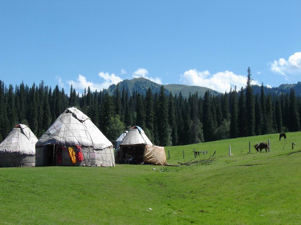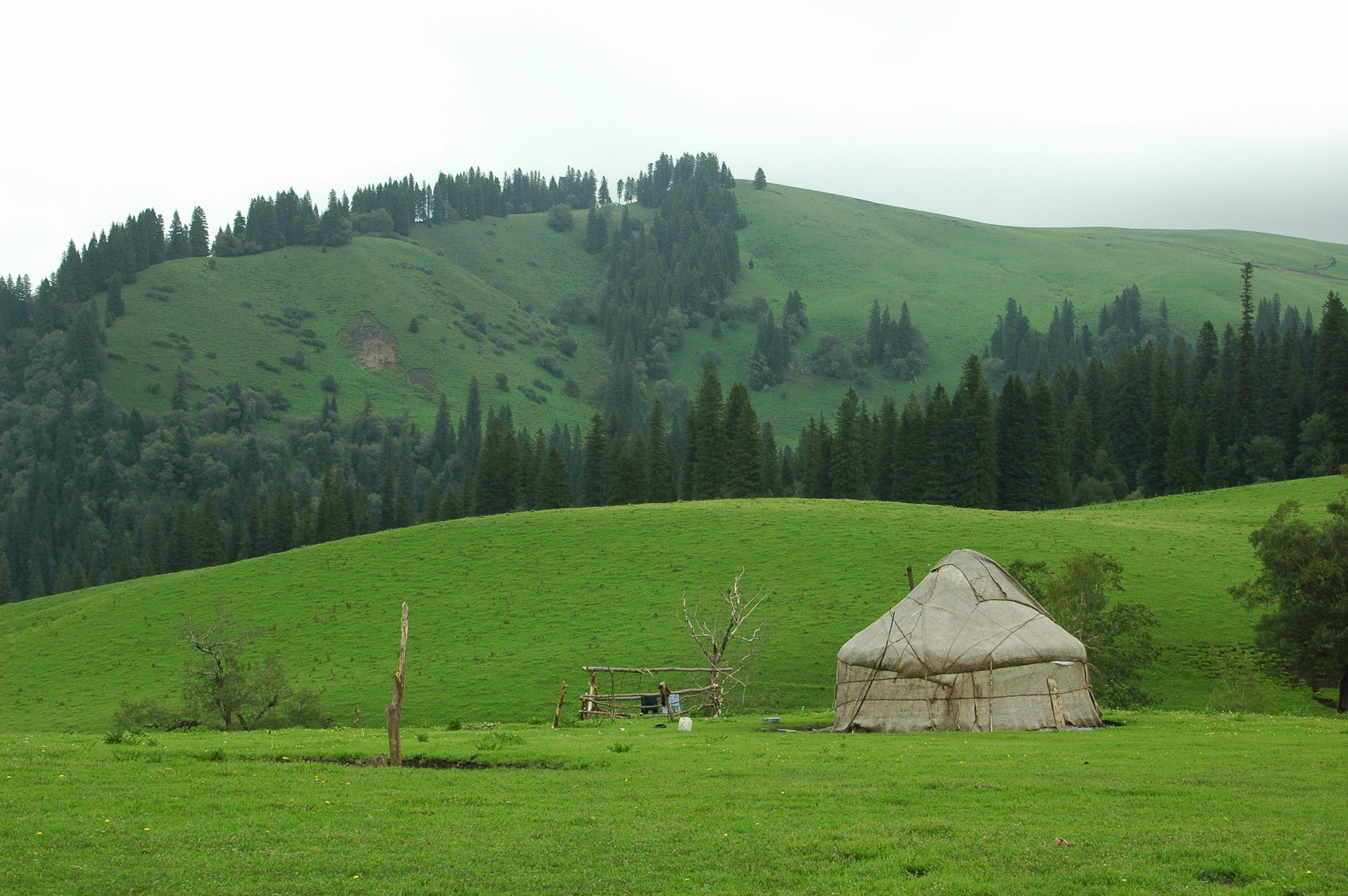 恰普河夏季牧場是名副其實的空中草原,平均海拔在兩千米以上。在景點歇馬臺遠眺,山下蜿蜒西去的鞏爾斯河像一條閃耀銀光的藍色絲帶飄落在寬闊的山谷之中。兩側重巒疊翠,云靄騰騰。大有“仰天一長嘯,萬里白云來”之勢。舉目藍天如洗,幾羽蒼鷹在悠閑地盤旋。側目牧草如毯,一群群牛羊在坡地上安逸地徘徊,不時有牧人縱馬馳騁,驚起一片飛鴻……