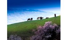 那拉提草原是發(fā)育在第3紀古洪積層上的中山地草場,東南接那拉提高嶺,勢如 屏障,西北沿鞏乃斯河上游谷地斷落,地勢大面積傾斜,山泉密布,溪流縱橫。緣山腳沖溝深切,河道交錯,森林茂密,莽原展緩起伏,松塔沿溝擎柱,還有氈房點點,畜群云移,是鞏乃斯草原的重要夏牧場。 那拉提草原系亞高山草甸植物,由茂盛而絢麗的中生雜草與禾草構成植株高達50-60厘米,覆蓋度可達75-90%。仲春時節(jié),草高花旺,碧茵似錦,極為美麗。那拉提年降水量可達800毫米。有利于牧草的生長,載畜量很高,歷史上的那拉提草原有“鹿苑”之稱。一望無垠的草原上撒落著珍珠般雪白的氈房,草原南側有終年白雪皚皚的雪峰相伴,綠草、雪峰相映成輝,構成了一幅幅動人的畫卷,是典型的高山草原。在這里,您可以親身感受到“風吹草低見牛羊”的高山草原美麗景色。