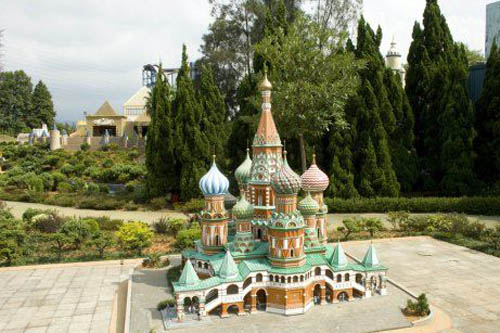 歐洲迷你景觀區(qū)包括歐洲許多代表性建筑,例如“古典時(shí)期”的希臘神殿、“羅馬式”的伏姆斯大教堂、圣法蘭西斯教堂的“哥德式建筑”及結(jié)合了回教拜占庭風(fēng)格、哥德式尖拱、仿羅馬式拱廊的圣巴西爾大教堂。