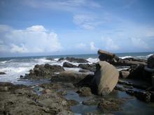 地形因局部折及理發(fā)達,經(jīng)過亙古風化、海蝕作用,形成單斜脊、豆腐巖、蕈狀石等各種奇巖怪石,宛如天然地理教室。因風景酷似北海岸的野柳,故名小野柳。假日可至此賞海、捉熱帶魚,亦不失為一好去處。