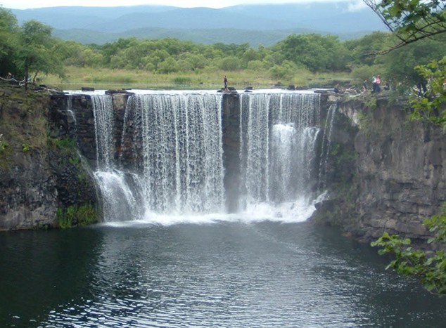 吊水樓瀑布,古時土著人名曰"發(fā)庫",位于湖之北端,距"鏡泊山莊"僅三公里。從"鏡泊山莊"乘車,沿著一條山路,便可抵達(dá)龍泉山腳下的冷食店"湖光閣"。由"湖光閣"向左轉(zhuǎn),駛進(jìn)盤山曲徑,通過急流上懸架的"飛虹橋",再穿越一段枝葉交錯的綠色長廊,一座古樸雅致的六角亭臺便出現(xiàn)在眼前。此時,瀑布瀉落的轟鳴之聲不絕于耳,撲面的微風(fēng)夾雜著一股股沁人的清新與甘甜。游人至此多于亭中小憩,然后步行穿過一片闊葉林,呼嘯奔騰、氣勢磅礴的"吊水樓瀑布"便映入眼簾。吊水樓瀑布酷似聞名世界的"尼亞加拉大瀑布"。湖水在熔巖床面翻滾、泡哮,如千軍萬馬之勢向深潭沖來,然后從斷巖峭壁之上飛瀉直下,撲進(jìn)圓形甌穴之中。潭水浪花四濺,如浮云堆雪,白霧彌漫;又似銀河倒瀉,白練懸空。水聲震耳如有雷鳴。瀑布一般幅寬四十余米落差為十二米。雨季或汛期,瀑布呈現(xiàn)兩股或數(shù)股迭落,總幅寬達(dá)二百余米。瀑布兩側(cè)懸崖巍峨陡峭,怪巖崢嶸。站在崖邊向深潭望去,如臨萬丈深淵,令人頭暈?zāi)垦?。一棵高大遮天的古榆枝繁葉密酷似一把天然的巨傘,踞險挺立于峭崖亂石之間。斑駁的樹影中,一座小巧的八角亭榭依巖而立,人稱"觀瀑亭"。亭臺至瀑布流口及北沿筑有鐵環(huán)鎖鏈護(hù)欄。古榆下尚有一條經(jīng)人工鑿成的石頭階梯蜿蜒伸向崖底的黑石潭邊,枯水期間,潭水波平如鏡。據(jù)測黑石潭深達(dá)六十米,直徑也有一百余米。每逢晴天麗日,光照相瀑布,則有色彩斑斕的彩虹出現(xiàn)。凡到此游覽者,無不驚嘆其壯美的景色。詩人曾為它留下"飛落千堆雪,雷鳴百里秋。深潭霞飛霧漫,更有露浸岸秀"的優(yōu)美詩篇。瀑布之成因,據(jù)考察證實,是鏡泊湖火山群爆發(fā)時,噴發(fā)出的熔巖在流動進(jìn)程中,接觸空氣的部分首先冷卻成硬殼,而硬殼內(nèi)流動的熔巖中尚有一部分氣體仍未得到逸散,及至熔巖全部硬結(jié)后,這些氣體便從硬殼中排除,形成許多氣孔和空洞。版權(quán)所有山東聊城聊之旅國際旅行社有限公司,轉(zhuǎn)載必究!這些氣孔和空洞后又塌陷,形成了大小不等的熔巖洞。當(dāng)湖水從熔巖洞的斷面跌下熔巖洞時,便形成了十分壯觀的瀑布。冬季枯水期,瀑布不見了,卻可以觀賞到另一番景致。在熔巖床上,游人可發(fā)現(xiàn)許多被常年流水沖擊的熔巖塊因磨蝕而形成的大小深淺不等的溶洞。這些溶洞,猶如人工鑿琢般光滑圓潤,十分別致。環(huán)潭的黑石壁,又是一個天然的回音壁,它會把游人的輕歌笑語,經(jīng)圓型石壁的折射,清晰地傳到自己的耳邊。石壁可與北京天壇公園的"回音壁"相提媲美。