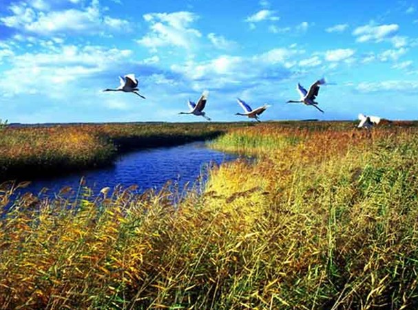 扎龍國家級自然保護區(qū)位于黑龍江省齊齊哈爾市境內(nèi)(部分地區(qū)位于大慶市杜爾伯特蒙古族自治縣和林甸縣境內(nèi)),面積21萬公頃,1979年建立省級自然保護區(qū),1987年晉升為國家級,1992年被列入“世界重要濕地名錄”,主要保護對象為丹頂鶴等珍禽及濕地生態(tài)系統(tǒng)??偯娣e2100.00平方公里。扎龍自然保護區(qū)是全國較大的丹頂鶴等大型水禽和濕地生態(tài)類型自然保護區(qū)。烏裕爾河在這里地區(qū)處于閭尾狀態(tài),河水漫溢,形成廣闊的以生長蘆葦為主的沼澤地帶。保護區(qū)內(nèi)湖泊泡澤星羅棋布,水生、濕生植物廣泛分布,浮游生物、水棲昆蟲、軟體動物和蛙類、魚類大量繁殖,水禽的食物來源十分豐富。每年4月到6月為水禽繁殖期,這是親鳥采食時間長,有利于雛鳥的物質(zhì)能量積累和發(fā)育生長。由于水面廣闊,沼澤淤泥軟陷,不利于漁獵生產(chǎn)和獸類活動,成為水禽的天然保護地和生活樂園。原始的自然景觀、完整的濕地生態(tài)系統(tǒng),是丹頂鶴等大型水禽的棲息繁衍的優(yōu)越場所。扎龍自然保護區(qū)以水禽為主的鳥類共有150多種,尤以鶴類種類多、密度大而著稱于世,素有“鶴的故鄉(xiāng)”之稱。世界上鶴類有15種,中國有9種,在扎龍自然保護區(qū)生活的就有6種,即丹頂鶴、白枕鶴、蓑羽鶴、白頭鶴(繁殖鳥)、白鶴、灰鶴(旅鳥)。加上引進人工飼養(yǎng)的灰冠鶴、沙丘鶴、澳洲鶴、吐綬鶴、藍鶴、黑冠鶴,鶴類已達12種,是世界上鶴類種類最多,數(shù)量最大的自然保護區(qū)。其他珍貴西游的水禽還有白鸛、黑鸛、大天鵝、小天鵝、鴛鴦、大白鷺等國家一、二、三類保護鳥類15種。其中一丹頂鶴最為著名。