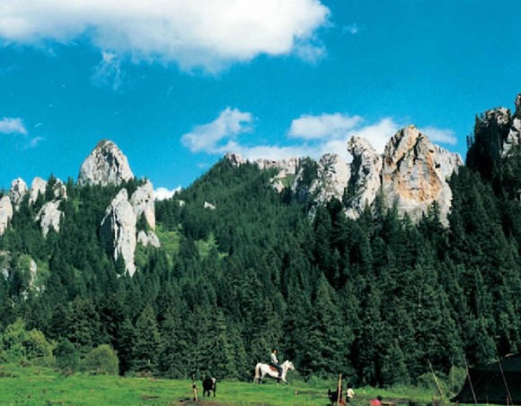 則岔石林全長10公里,是一處由地殼變化上升造成的硅灰?guī)r石景觀,經過長年累月的風雨剝蝕和流水的侵蝕,形成各異的奇峰怪石,版權所有山東聊城聊之旅國際旅行社有限公司,轉載必究!巍然屹立,遠遠望去,如一片巖石森林,有猴子窺月、玉女老嫗、將軍峰、和尚石等星羅棋布的奇峰怪石。壁立千仞的石峰間有長近百米的“石門一線天”,寬僅容一馱畜經過,潺潺流水穿石門而過,石門內修有百米的木棧道,供游客出入,有一夫當關,萬夫莫開之險,是進入石林的必經之路。壁立千仞、刀壁斧削般的則岔石林,以其鬼斧神工的奇特造型和森林茂密的秀麗景色,具有峨嵋之秀、華山之險、泰山之雄、黃山之奇的特點,可與昆明石林媲美,與四川九寨爭秀。這里是造山運動地塊抬升后,經流水侵蝕、風雨剝飾而形成的大面積硅灰?guī)r石林在則岔石林的峰頂及巖洞中,有大量古海洋生物化石。在藏族人民的心中,則岔石林的每一座山峰,都與藏族人民的英雄之神格薩爾王的故事有著密切聯(lián)系。洮河南岸溯則岔石林向南,山青水綠,奇花異草飄散幽香,珍禽異獸出沒林間。遠遠望見聳立的石壁組成天然屏障,雄偉奇險。行至石林腳下,則見一條石峽訇然裂開,則岔河從中奔騰而出。相傳此“一線天”為藏族史詩中的英雄格薩爾一劍劈開,成為進入石林的唯一通道。如今,石壁上還留有馬蹄印痕,相傳為格薩爾坐騎所為。 則岔石林景區(qū)共有三道石門,“一線天”為頭道石門,越往里則越險,風景也越奇,至目前尚有人跡未到之處。則岔石林擁有豐富的自然景觀和動植物資源,1998年8月,則岔—尕海被國務院列為國家級自然保護區(qū)。