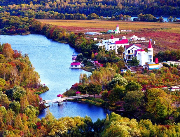 臨近回龍灣,只見具有古典建筑風(fēng)格,版權(quán)所有山東聊城聊之旅國際旅行社有限公司,轉(zhuǎn)載必究!上書“回龍灣山莊”幾個(gè)大字的門樓赫赫然映入眼簾。沿石甬路來到渡口-----“湯旺第一渡”,是進(jìn)入回龍灣山莊的惟一渡口。位于山莊牌樓東500米處,在河兩岸各有一座造型別致的懸索墩臺(tái),上有振翅飛的大型雕塑天鵝,將100余米鋼纜銜于口內(nèi),東拉西扯,蕩悠悠橫于碧波之上。木制懸浮碼頭,隨水勢起落調(diào)整高低。鐵殼雙舟并聯(lián),每次可載60人左右,雙舟在河水沖擊下,滑輪滾動(dòng),兩岸擺渡,既安全又充滿情趣,真可謂舟在水中游,人在畫中走。渡過百余米寬的湯旺河,棄舟登岸,映入眼簾的是刻有黑龍江省副省長、原伊春市市委書記王東華同志的題詞“青山無限美,碧水寄真情”的石牌。再往前走就來到了回龍灣正門,正門上書“湖山勝境”,言外之意,跨入此門才算真正來到回龍灣山莊。沿著由水泥預(yù)制板鋪成的小路往前走,展現(xiàn)在我們面前的是一尊造型獨(dú)特、妙趣橫生的“黑龍騰天”雕塑。黑龍眼望長空,尾巴翹立,欲騰飛離去,卻又顯出無限的眷戀之情,意味著不愿離開這美麗的地方。臨清別墅:屬回龍灣風(fēng)標(biāo)志性建筑,臨河而建,外觀為典型的歐式風(fēng)格。哥特式的紅色尖頂及拜占庭式的主體框架,配以乳白色的歐式風(fēng)格。哥特式的紅色尖頂及拜占庭式的主體框架,配以乳白色的白色的墻壁、碩大的藍(lán)色落地窗,顯示出浪漫的一國情調(diào),其每層風(fēng)格各異。一樓為會(huì)客室,寬敞明亮,一幅巨大的太公垂釣?zāi)镜窀接趶d壁,角落有日式內(nèi)室稱為“和寮”;二樓的“漢閣”正墻上懸掛一幅精心裱褙的字軸,上面完整地記敘了回龍灣開建設(shè)歷史;三樓為“獵舍”,彷舊時(shí)獵舍居室風(fēng)格裝修,古樸典雅,耐人尋味。蒙古村落:位于回龍灣南于東皋臺(tái)隔灣相望,有五座敖包組成。錯(cuò)落有致地排列于萋萋芳草中。一架勒車閑置在包前,幾只散養(yǎng)的牛羊在沒膝深的野草叢里悠然吃草,裊裊炊煙從敖包頂端升起.不時(shí)有身著鮮艷民族服裝的姑娘手托著香氣撲鼻的菜肴出入包中,儼然成吉思汗的子孫們活生生的場景.此時(shí)那首有名的"敕勒川,陰山下,天似穹廬,籠蓋四野,天蒼蒼,野茫茫,風(fēng)吹草低見牛羊"的 《敕勒歌》便會(huì)自然涌上腦海.敖包內(nèi)裝飾極具民族風(fēng)格,是游人就餐之地.熏羊腿、燒牛寶、手把肉、烤全羊等佳肴,其味美純正,風(fēng)味十足,定會(huì)使你大飽口福.