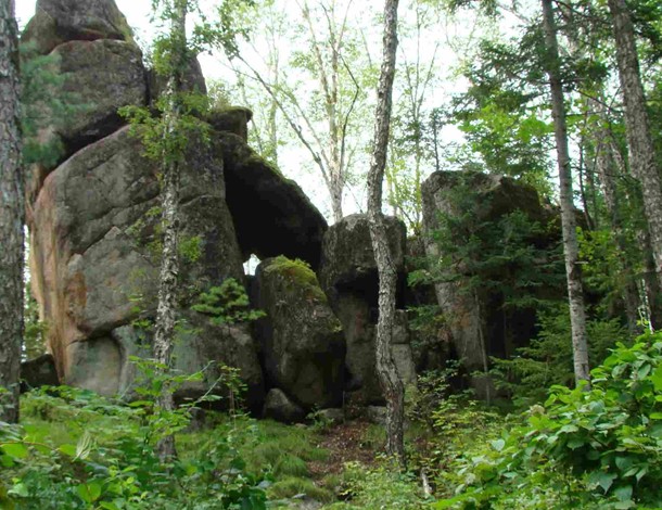 位于距市區(qū)7公里處。在一片密林中,有一簇平地拔地而起,以一塊塊花崗巖巨石砌成的石峰,高大雄偉,其形似柱,稱謂石林。石林由六座石峰組成,南二北四。北面四座一字梯形排列,一高近丈,二高近二丈,三高平二丈,四高一丈半。二峰端長有蒼松一株,似示最高。各峰成形惟妙,二三座石峰間相距極狹,僅尺許,縫如刀切,稱“一線天”。在第四座石峰南5米處,還有兩座石峰,相距不足1米,微低。遠望,形如雄師臥地,前身支起而后身匍匐,似忠誠的護林衛(wèi)士。第二叢樹林,在第一叢以東偏南,相距約百米。由三座石峰構(gòu)成,北二南一。北西兩座甚是匹配,高九仞余,其中一座有三個峰端,有護林人“家業(yè)興旺”之寓。沿三峰石南側(cè)攀緣而上,至高6米處,鉆過兩塊大石堆成的石門,便到了石峰東側(cè)的平臺,臺成弧狀,可納十余人。臺下是陡峭絕壁,其險令人目眩。臺之對面,有一塊呈圓鼓狀、低于平臺1米之大石,可容四人并坐,版權(quán)所有山東聊城聊之旅國際旅行社有限公司,轉(zhuǎn)載必究!其底部與三峰石相連,有狹道與平臺相通。登石眺望,可觀得西南方向約20米處的丈余高之石峰,似一擎天巨柱……石林,仿佛小興安嶺建設(shè)者之雄資,在廣袤密林中,手捧奇花異草,伴著山間小溪流水淙淙,迎候著遠方的客人。