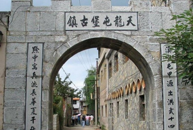 天龍屯堡古鎮(zhèn)地處西進云南的咽喉之地,在元代這里就是有名的順元古驛道,天龍屯堡古鎮(zhèn)最早是順元古驛道上的一個驛站,版權(quán)所有山東聊城聊之旅國際旅行社有限公司,轉(zhuǎn)載必究!名叫飯籠驛。由于軍事地理位置重要,從明代開始就在這里及周邊大量屯兵,時至今日依然是駐軍重地。清朝康熙年間,云貴總督范承勛奉旨實行“改土歸流”后,屯堡人由軍戶轉(zhuǎn)變?yōu)槠胀ò傩?。天龍屯堡古?zhèn)更名為“飯籠鋪”,由于地理位置的重要性,這里依然是清廷的驛站和屯兵重地。本世紀初,天龍的幾位有名鄉(xiāng)儒感覺飯籠鋪的“飯籠”二字不雅,經(jīng)提議,取天臺山的“天”,龍眼山的“龍”二字為村寨之名,這就是天龍屯堡鎮(zhèn)“天龍”二字的由來。歷代的屯兵都在這塊大地上留下了歷史的遺跡:明朝征南軍隊在天臺山背后的兵器加工場所(本地人呼之為“打鐵坑”);煙堆山的明代烽火臺殘壘;圍繞天臺山的古城墻;清“威同之亂時”修建有垛口、炮臺、瞭望哨的龍眼山屯,至今殘垣尚存;在天龍屯堡古鎮(zhèn)中,則是巷道縱橫交錯,遍布于巷道中的深邃搶眼,石拱門一夫當關(guān),萬夫莫開的軍事功能,這一切無不顯示出戰(zhàn)爭的遺跡,屯堡人武備的思想。明代飯籠驛最初的建設(shè)者是如今天龍“張、陳、沈、鄭”四大姓的入黔始祖?zhèn)?,特別是身為“通政大夫”的陳典(注:通政大夫是主管郵政的官吏),在天龍設(shè)驛站,建塘房(塘房是驛站供來往人員住宿的地方),其他三大姓入黔始祖則建“屯堡”屯扎軍隊。