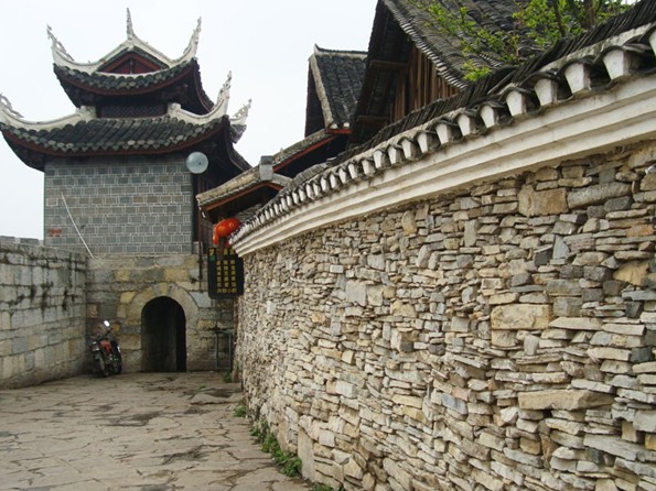 天龍屯堡古鎮(zhèn)地處西進云南的咽喉之地,在元代這里就是有名的順元古驛道,天龍屯堡古鎮(zhèn)最早是順元古驛道上的一個驛站,名叫飯籠驛。由于軍事地理位置重要,從明代開始就在這里及周邊大量屯兵,時至今日依然如幫,這里仍是駐軍重地。 清朝康熙年間,云貴總督范承勛奉旨實行“改土歸流”后,屯堡人由軍戶轉(zhuǎn)變?yōu)槠胀ò傩?。天龍屯堡古?zhèn)更名為“飯籠鋪”,由于地理位置的重要性,這里依然是清廷的驛站和屯兵重地。歷代的屯兵都在這塊大地上留下了歷史的遺跡:明朝征南軍隊在天臺山背后的兵器加工場所(本地人呼之為“打鐵坑”);煙堆山的明代烽火臺殘壘;圍繞天臺山的古城墻;清“威同之亂時”修建有垛口、炮臺、瞭望哨的龍眼山屯,至今殘垣尚存;在天龍屯堡古鎮(zhèn)中,則是巷道縱橫交錯,遍布于巷道中的深邃搶眼,石拱門一夫當關(guān),版權(quán)所有山東聊城聊之旅國際旅行社有限公司,轉(zhuǎn)載必究!萬夫莫開的軍事功能,這一切無不顯示出戰(zhàn)爭的遺跡,屯堡人武備的思想。明代飯籠驛最初的建設(shè)者是如今天龍“張、陳、沈、鄭”四大姓的入黔始祖?zhèn)?,特別是身為“通政大夫”的陳典(注:通政大夫是主管郵政的官吏),在天龍設(shè)驛站,建塘房(塘房是驛站供來往人員住宿的地方),其他三大姓入黔始祖則建“屯堡”屯扎軍隊。天龍屯堡古鎮(zhèn)是一個軍事防御功能完善的屯堡建筑典范,它四周建有石拱門,巷道如網(wǎng),易守難攻,橫跨在古驛道上,是上扼滇喉,下控湘、粵的軍事重地。