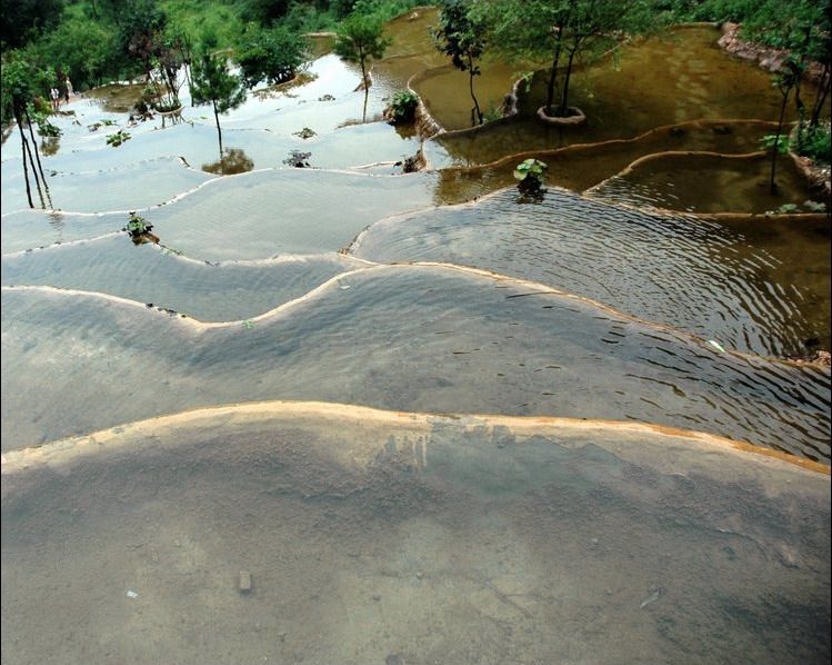 水簾仙宮瀑布下面這一大片大大小小的鈣化池,象一面面鏡子平放在這半坡之上,完全可以和四川的黃龍媲美,這是迄今為止中原地區(qū)唯一的鈣化池群。