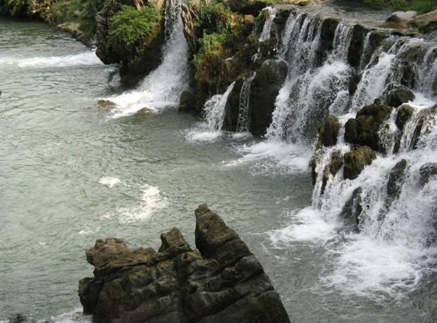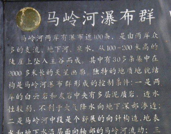 中國(guó)最大瀑布群,這里石峰成林,壯闊雄偉;峽谷成河,奇險(xiǎn)幽深。它是國(guó)家最近公布的重點(diǎn)風(fēng)景名勝區(qū)之一。馬嶺河發(fā)源于烏蒙山脈,流入黔、桂交界的南盤(pán)江,長(zhǎng)達(dá)100多公里。它的地貌結(jié)構(gòu)與一般峽谷不同,實(shí)際上是一條地縫。有人說(shuō):這是地球最美麗的傷疤。沿著石階下坡,奇險(xiǎn)幽深的峽谷就逶迤展現(xiàn)在眼前。走在這條深200-400米的地縫底部,只見(jiàn)尖峭的峰巒赫然屏列,瀑布異彩紛呈且氣勢(shì)磅礴,有一種幽深的神秘氣氛彌漫在山谷間。
