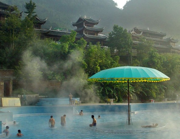 劍河溫泉為國內(nèi)稀有的氡硫溫泉,日涌水量1800 噸,富含氡、硫、鐵、鉀、鈣等元素,其理化指標(biāo)與法國著名的維稀溫泉相似,有消毒、去疾、健膚之功效,常浴可治療和預(yù)防多種疑難病癥,自古享有 “苗鄉(xiāng)圣水” 、“西部浴都”之美譽。1989年,在這里開發(fā)為現(xiàn)代化的溫泉浴場,里面有一幢內(nèi)設(shè)鴛鴦浴池、桑拿浴池、美容廳的“舒樂”健身房,還有4個露天浴池,其中有為當(dāng)?shù)孛缱逋碛玫穆短煸〕?,上邊的是男池,下邊的為女池,(他)她們至今還保持著原始古樸的裸浴習(xí)慣。裸浴,在(他)她們看來,是一種自然現(xiàn)象,無須顧忌,對偶然出現(xiàn)在浴池邊的外地人,版權(quán)所有山東聊城聊之旅國際旅行社有限公司,轉(zhuǎn)載必究!只要你不是在有意偷看,(他)她們會毫不在意。