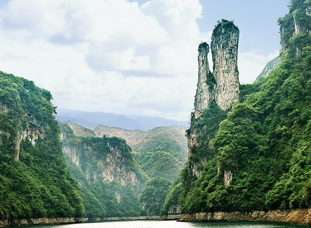 施秉上舞陽河景區(qū),位于貴州省黔東南自治州施秉縣西北部,距縣城8公里,規(guī)劃面積81平方公里,游覽景點27處。景區(qū)自然生態(tài)稱絕于世,原始植被郁郁蔥蔥,兩岸奇峰怪狀萬千;“姜太公釣魚”老態(tài)龍鐘;“仙人曬鞋”、 “一足撐天”,個性特別;“宮門雙厥”龍王神針天下一絕;“人面獅身”、“八仙過海”、“金猴望月”游人目不暇接;......27個景點像27顆翡翠明珠,鑲嵌于上舞陽河兩岸,青翠欲滴倒影漣漣,如天然盆景、如瑤池再現(xiàn)。整個景區(qū)層次分明、對比強烈、濃淡相間、疏密有序,構(gòu)成一副天然綠色藝術(shù)長廊。景區(qū)上段以雄奇見長;中段舒緩平展;下段清幽神往、形成天構(gòu)地設山情水韻為特色的水上極樂公園。游覽上舞陽景區(qū),猶如來到夢幻般的童話世界,令人如醉如仙。