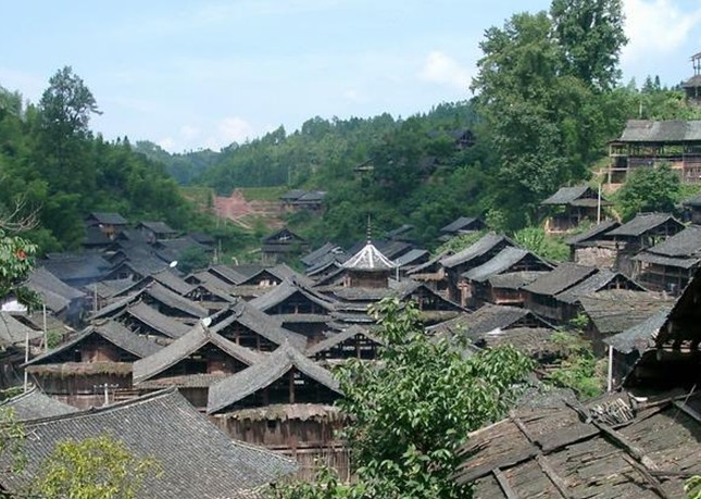 岜沙隸屬貴州省從江縣,距離從江縣城7.5公里、位于山頂和國道321老線公路邊的一個(gè)苗寨。岜沙部落僅2000余人,分住在月亮山麓茫然林海中的5個(gè)寨子里。走進(jìn)岜沙,隨處可見茂密的森林。他們以稻作為主,狩獵為伴。這里箐黑林密,鳥道蠶叢,具有很強(qiáng)的隱蔽性,千百年來極少有外人進(jìn)入。岜沙村不大,村寨建于山粱坳口及面向都柳江一側(cè)的半坡上。