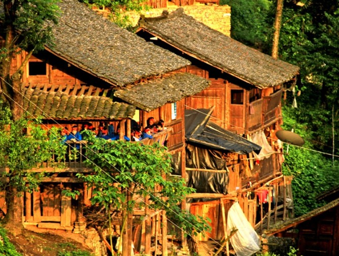榕江縣侗家村寨大多坐落在古樹(shù)參天,風(fēng)光秀麗,竹林掩映,依山傍水的地方。房屋多為二層或三層不等的木質(zhì)結(jié)構(gòu)吊腳樓,吊腳樓一般依山勢(shì)開(kāi)辟成兩層地基,下層屋基柱腳須用筒柱支撐,有的因偏廈建在地基之外的村巷上或魚(yú)塘上而無(wú)支柱造成木樓空懸,吊腳樓因此而得名。七十二寨的房子,每幢樓一般分兩間或三間,也有五間或七間的。除了正屋外,兩側(cè)還設(shè)有寬約丈許,與正屋進(jìn)深等長(zhǎng)的偏廈,上樓的樓梯多架于正屋右側(cè)的偏廈上,二樓前邊是一道由東直通往西的長(zhǎng)長(zhǎng)走廊,廊沿外及整個(gè)房子四周先裝木板后于裝板外鑲嵌雕花格子,這就是我們通常所說(shuō)的雕房。走廊里外分別擺放有幾根寬約尺許,長(zhǎng)達(dá)丈余的杉或松木板凳供客人休息用。七十二寨侗族的火堂一般設(shè)在堂屋里間或兩側(cè)房間內(nèi),火堂分“平燒火堂”和“高燒火堂”兩種。樓下主要用來(lái)關(guān)養(yǎng)牲畜,樓上住人,存放糧食,天樓堆放生活、農(nóng)用雜物等。平燒火堂的表層齊樓板表面,裝滿黃泥巴的撻斗形狀的火堂斗高約一尺,長(zhǎng)寬約1米見(jiàn)方,懸于樓板下邊;高燒火堂的泥斗置于樓板之上,火堂表面高于樓板尺許,左右及內(nèi)側(cè)再鋪一層樓板,形成上下兩層,就表上層連火堂形成長(zhǎng)約一丈,寬約六尺的長(zhǎng)方形樓臺(tái),臺(tái)下的樓板僅余常約一丈,版權(quán)所有山東聊城聊之旅國(guó)際旅行社有限公司,轉(zhuǎn)載必究!寬4尺的狹長(zhǎng)形,與火堂表面形成兩層,這就是獨(dú)具特色的七十二寨侗族“火鋪臺(tái)”。“火鋪臺(tái)”主要用于炊事和烤火,其下面一般是用來(lái)存放紅苕、洋芋等物。這就是七十二寨侗家人房屋建筑的特點(diǎn)。