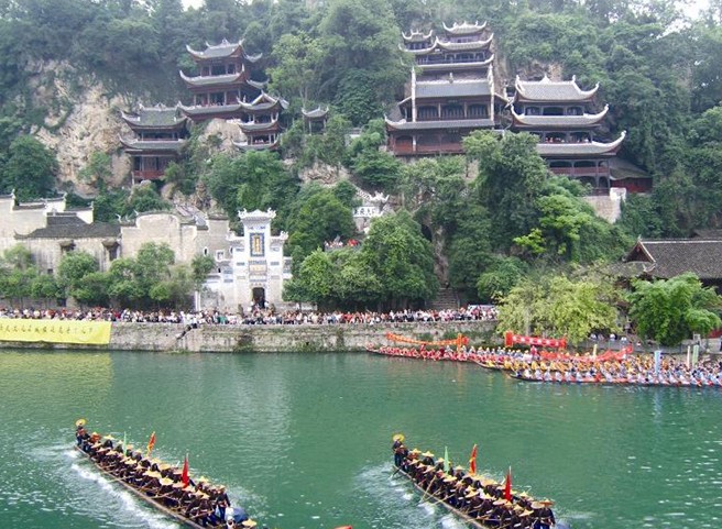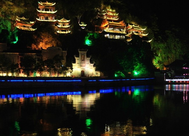 青龍洞古建筑群坐落在中國歷史文化名城——鎮(zhèn)遠(yuǎn)城東的中和山上。這里山勢挺拔,峭壁懸崖。巨巖、洞穴和為一體。道、儒、佛三種宗教的寺廟群生就山腰。它背靠青山,面臨綠水,貼壁臨空,五步一樓,十步一閣,翹翼飛檐、雕梁畫棟。這些古建筑依山因地,分別采用了“吊”、“借”、“附”、“嵌”、“筑”等多種工藝,硬是在一段懸崖上筑出中元洞、紫陽洞、青龍洞、萬壽宮等一片閣樓洞天。它氣勢雄偉、構(gòu)思大膽、布局精巧。于1988年被列為全國重點文物保護單位。青龍洞建于明代中葉,至今已有近500年的歷史,曾幾度毀于兵、火,幾度修復(fù),古建筑群經(jīng)歷代修建始成現(xiàn)代規(guī)模,位于城東中河山,占地21000平方米,有青龍洞、紫禪書院、中禪院、萬壽宮、祝圣橋和香爐巖6部分共36座單體建筑組成,集儒、道、佛、會館、橋梁及繹道建筑文化于一身。版權(quán)所有山東聊城聊之旅國際旅行社有限公司,轉(zhuǎn)載必究!整群建筑靠山臨江,依崖傍洞貼壁凌空、勾心斗角,錯落有致。那飛巖翹角、貼壁凌空、紅墻青瓦的殿閣樓臺,氣勢宏偉。造型獨特的建筑物與懸崖、古木、藤蘿、巖畔、溶洞天然合成,融為一體,真是巧奪天工。既有臨江遠(yuǎn)眺的吊腳樓,也有恬靜幽邃的寺院禪臺,有朗朗書聲的學(xué)子院,更有鑼鼓喧天的戲臺,集天下山水樓閣薈萃為一方。整個建筑群重重疊疊參差不齊,縱橫有致,沿庭院小徑漫步,登斯樓而極目,如臨海市蜃樓,蓬萊仙島。為江南漢地建筑與西南少數(shù)民族山地建筑文化相結(jié)合的絕妙典范。有“西南懸空寺”之稱,是貴州省規(guī)模最大的古建筑群。1988年經(jīng)國務(wù)院批準(zhǔn)被列為國家級重點文物保護單位。史載,距今600多年的明洪武年間,此地便已形成與現(xiàn)存建筑群相當(dāng)?shù)囊?guī)模,“明郡守黃希英建,工部郎中趙之緒購藏經(jīng),構(gòu)層樓以貯之”。清嘉靖年間這里不僅增加了大量寺廟,而且有了宮室和書院建筑,后多有改擴建。雍乾時又有了萬壽宮等商業(yè)性會館建筑及戲樓。光緒四年,又增建了祝圣橋上的狀元樓(亦稱魁星樓)。1956—1963年間,省州政府撥出專款,組織專人對青龍洞建筑群兩度較大維修,后又對中元洞一組修復(fù)。1983年起,省政府再次撥巨款對青龍洞、紫陽洞、萬壽宮、香爐巖等各組古建筑全面搶救和修復(fù),青龍洞古建筑群得以恢復(fù)原貌。此建筑名勝有如群星 燦爛,通常以青龍洞概言之,成了歷代游人流連忘返之地,文人騷客詠嘆之物。清人陳夔龍詩云: