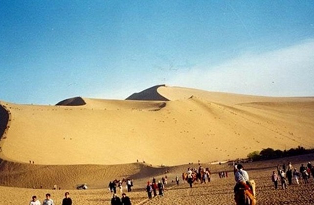 鳴沙山由大大小小幾十座山岡組成,相對(duì)高度多在100米以上。山岡的形狀呈棱錐體,棱角分明就像人工制做的一樣,看上去有點(diǎn)像埃及的金字塔,又像瑞士風(fēng)格的建筑物,整個(gè)形態(tài)極富雕塑感。在幾座沙岡之間,有一類似敦煌月牙泉的洼地,只是它無(wú)水且呈滿月型,有5米多深,面積大約100多平方米,底部長(zhǎng)著幾大墩青綠茂盛的鹽蕙木和一些綠油油的青草,千萬(wàn)年來(lái)風(fēng)沙侵逼,卻沒(méi)有把它填平。版權(quán)所有山東聊城聊之旅國(guó)際旅行社有限公司,轉(zhuǎn)載必究!當(dāng)汽車開近沙山時(shí),似有雷鳴號(hào)角之聲從沙山內(nèi)部發(fā)出,時(shí)斷時(shí)續(xù),時(shí)高時(shí)低,忽如絲弦悠揚(yáng),忽若鐵騎奔突。當(dāng)人們從沙山頂部向下滑動(dòng)時(shí),隨著黃沙的滾動(dòng),沙山發(fā)出雄渾、低沉的響聲,其聲激越尖厲,猶如轟炸機(jī)掠過(guò)低空一般,經(jīng)久不息。如果多人并排下滑,其轟鳴聲則震耳欲聾,并使腿下產(chǎn)生如由按摩器振動(dòng)產(chǎn)生的酥麻感。特別有趣的是,從沙山上的不同位看下滑會(huì)有不同的響聲,而且滑痕稍現(xiàn)即逝,馬上平復(fù),令人稱奇不已。